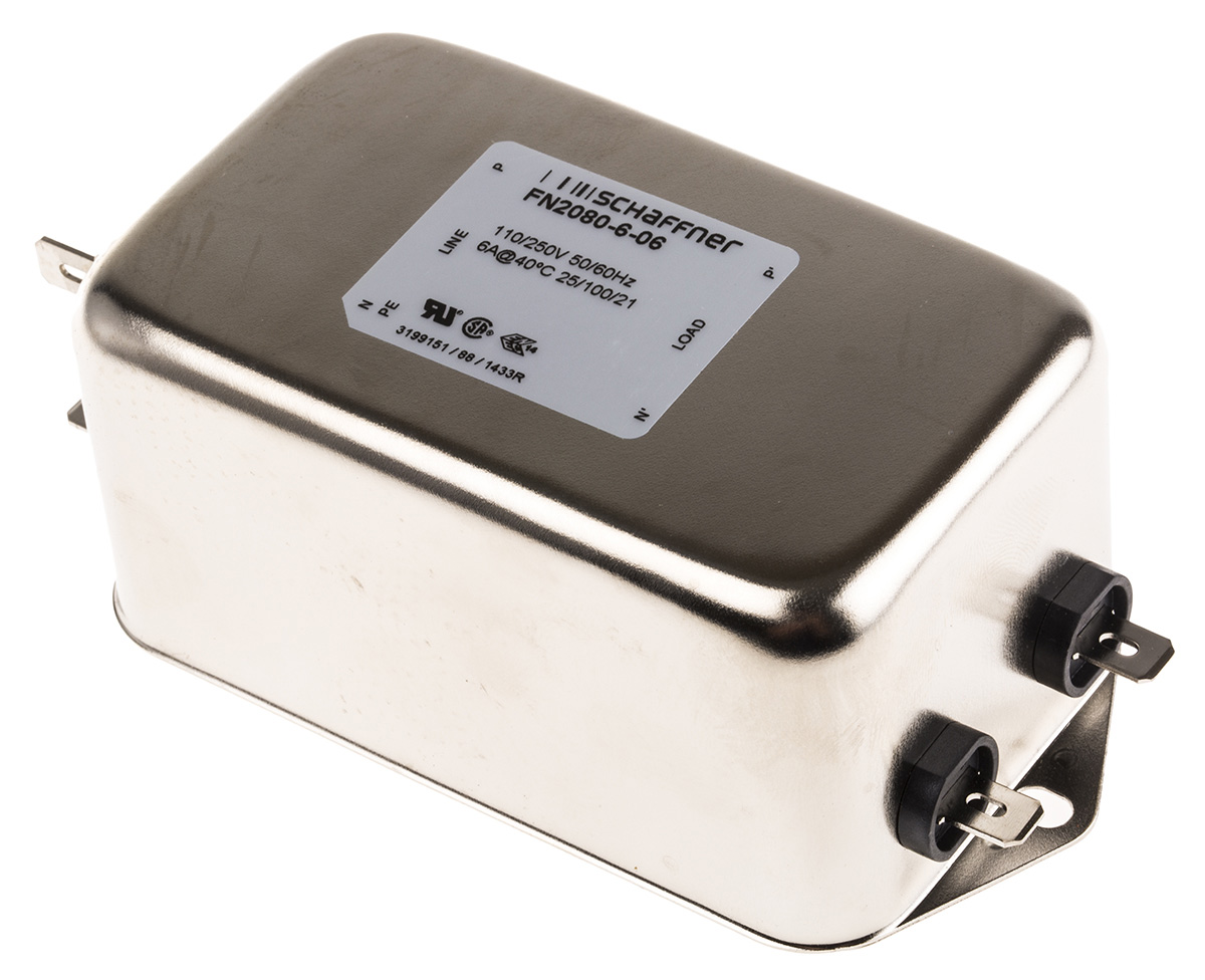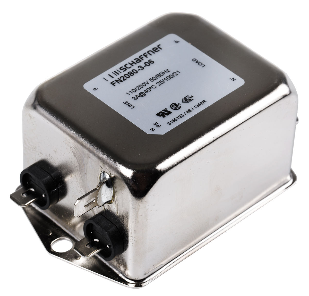 6. 2-stage filter, 50 to 400 Hz, 3 A, 250 V (DC), 250 VAC, 9.8 mH, faston plug 6.3 mm, FN2080-3-06 160.75