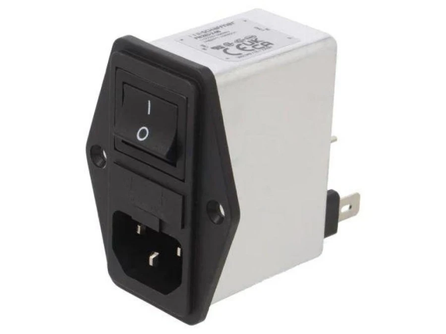11. IEC inlet filter C14, 50 to 400 Hz, 4 A, 250 VAC, 1 mH, faston plug 6.3 mm, FN283-4-06 143.43