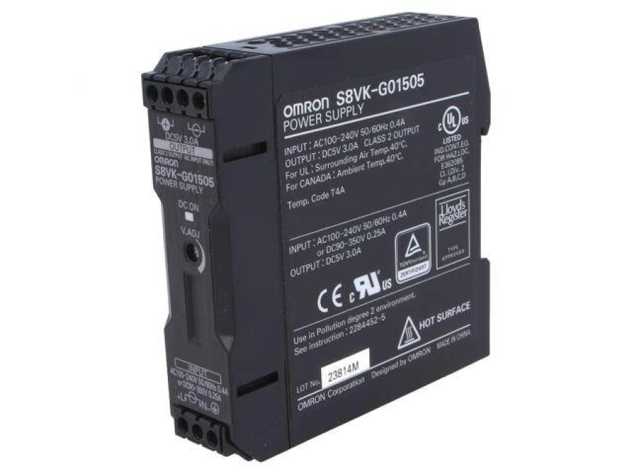 2. S8VK-G01505 zasilacz impulsowy 5VDC, 15W; 3A; wejście 85-264VAC lub 90-350VDC, na szynę DIN, temp. -40...70ºC, linia PRO, OMRON, 248.34