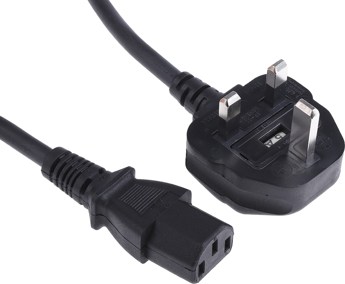 Przewód zasilania złącze A: IEC C13, złącze B: Wtyk brytyjski typu G 3m 10 A 250 V 1mm2 Czarny