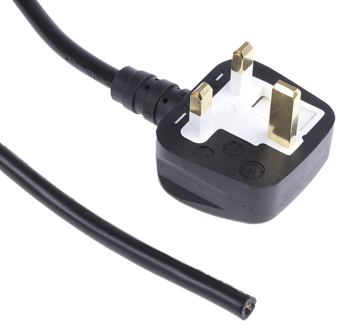Przewód zasilania, złącze A: Bez zakończenia, złącze B: Wtyk brytyjski typu G 3m 10 A 250 V Czarny