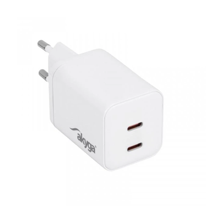 Ładowarka sieciowa Akyga AK-CH-32 65W 2x USB-C PD GaN 5-20V / 2.25-3A biała