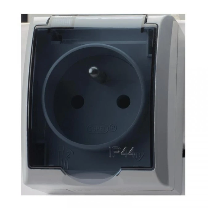 FALA Gniazdo pojedyncze z uziemieniem natynkowe IP44 z klapką białe GNH-1HZ/00/d OSPEL