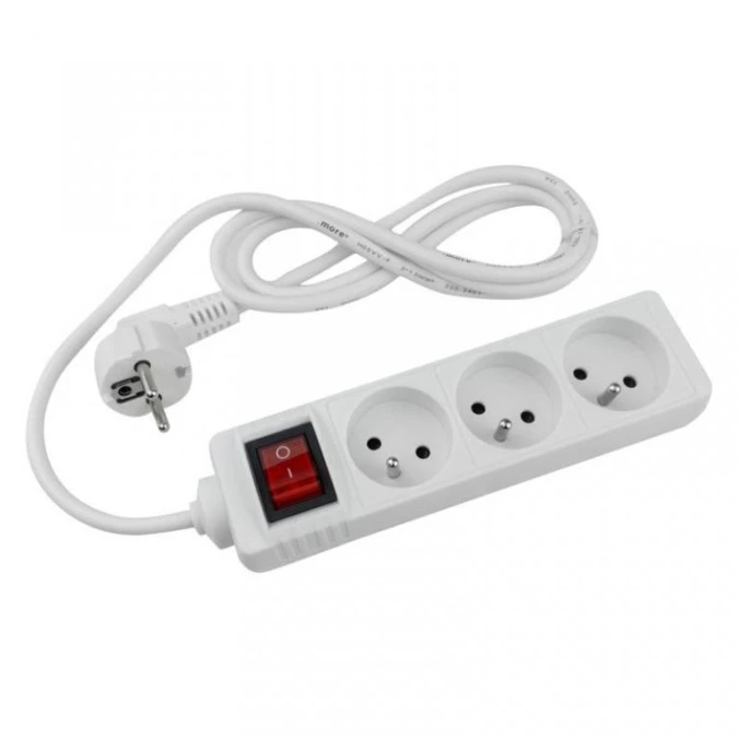 7. Listwa Zasilająca 3 Gniaz Z/U Z Wyłącznikiem Biała 10.59