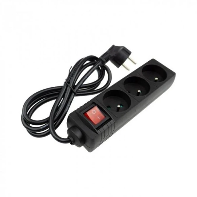 Przedłużacz 3 gniaz 1.5m z/u z wyłącznikiem CZARNY