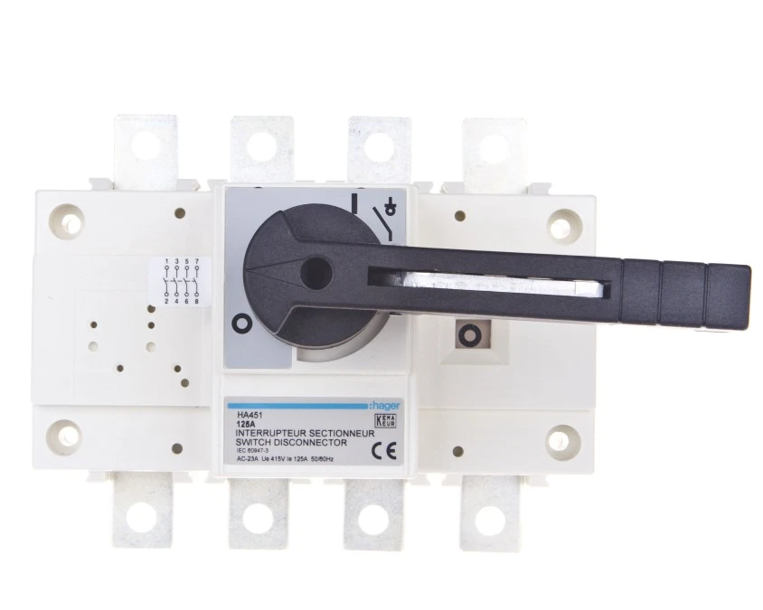 3. Rozłącznik izolacyjny 3-fazowy 4P 125A 415V AC HA451 HAGER 520.70