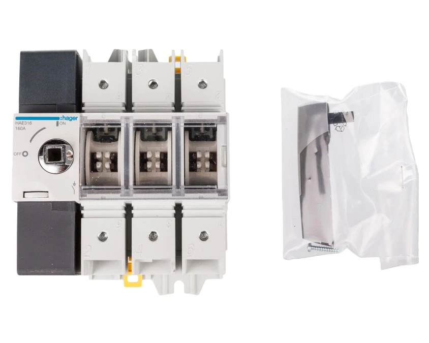 2. Rozłącznik izolacyjny 3-fazowy 3P 160A 415V AC HAE316 HAGER 480.77