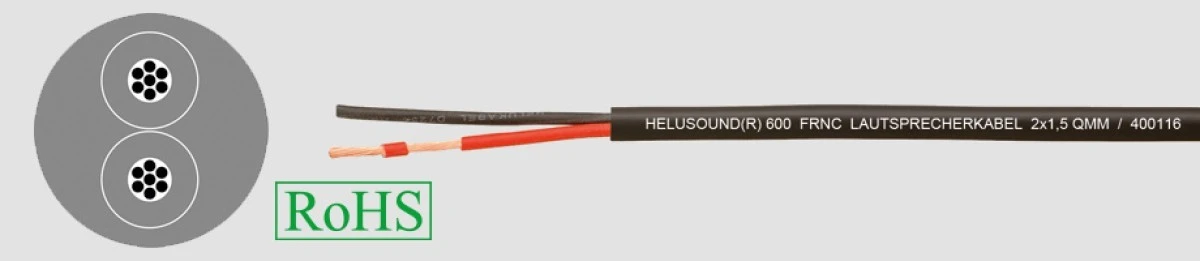 Przewód głośnikowy HELUSOUND 600 FRNC 2x1,5 bezhalogenowy czarny 400116 /bębnowy/