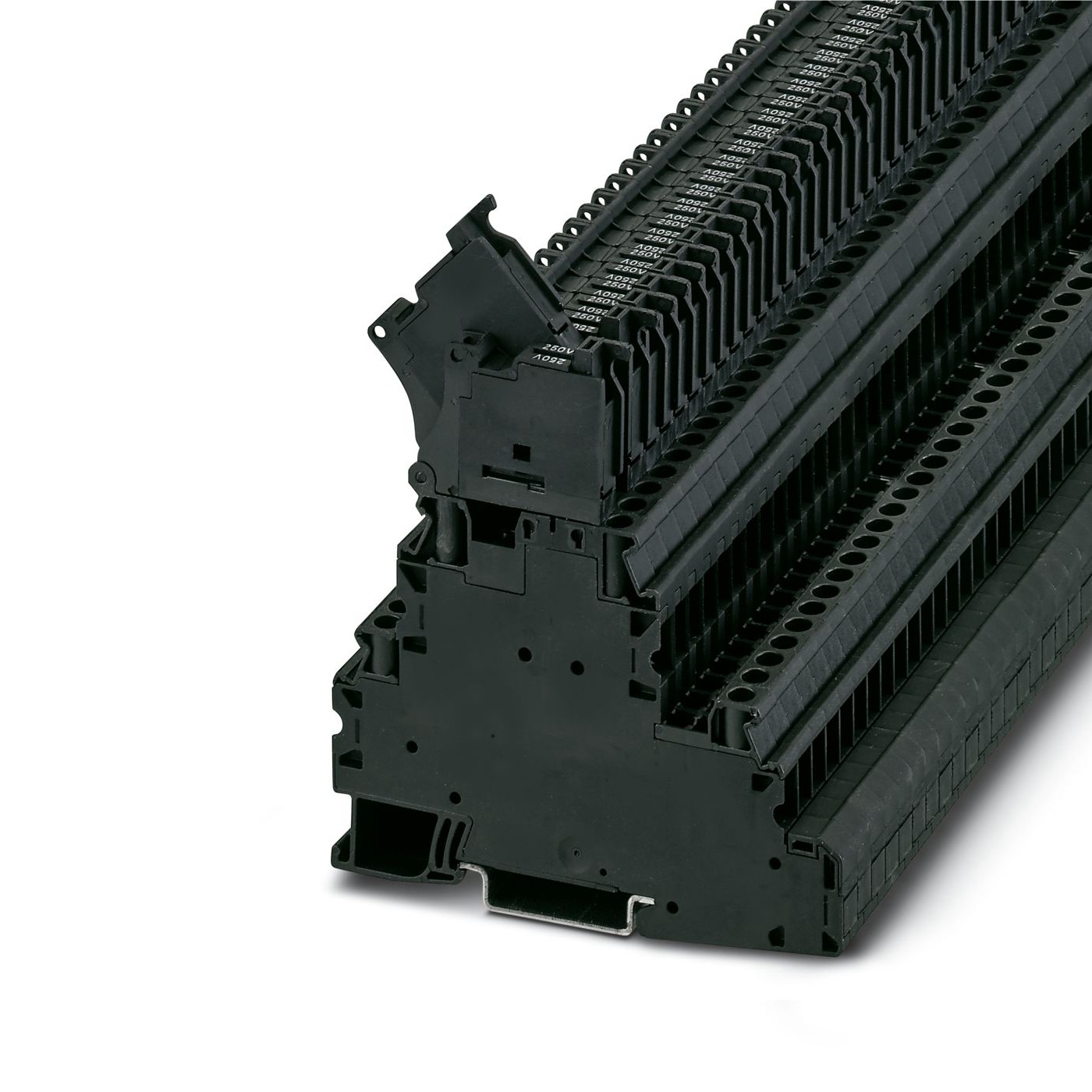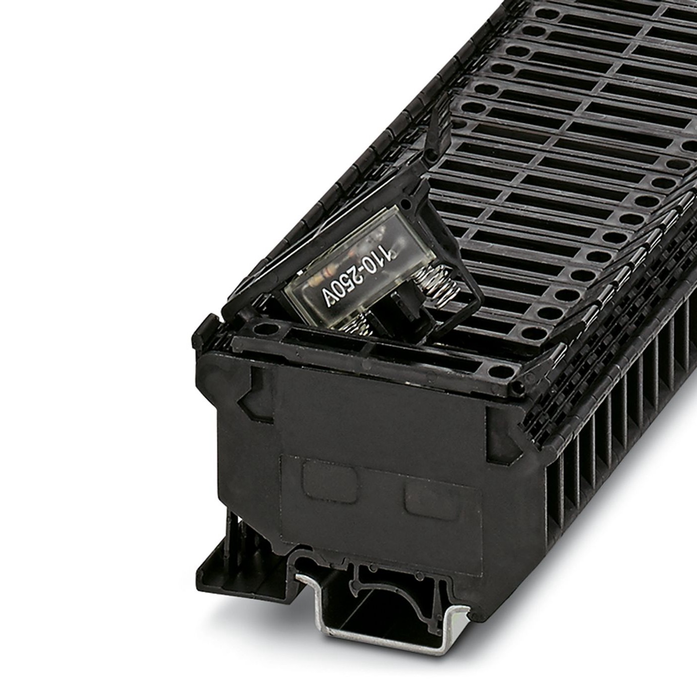 15. Złączka szynowa z bezpiecznikiem 5x20 4-przewodowa 4mm2 czarna UT 4-L/HESILA 250 (5X20) 3214368 /50szt./ 2186.33
