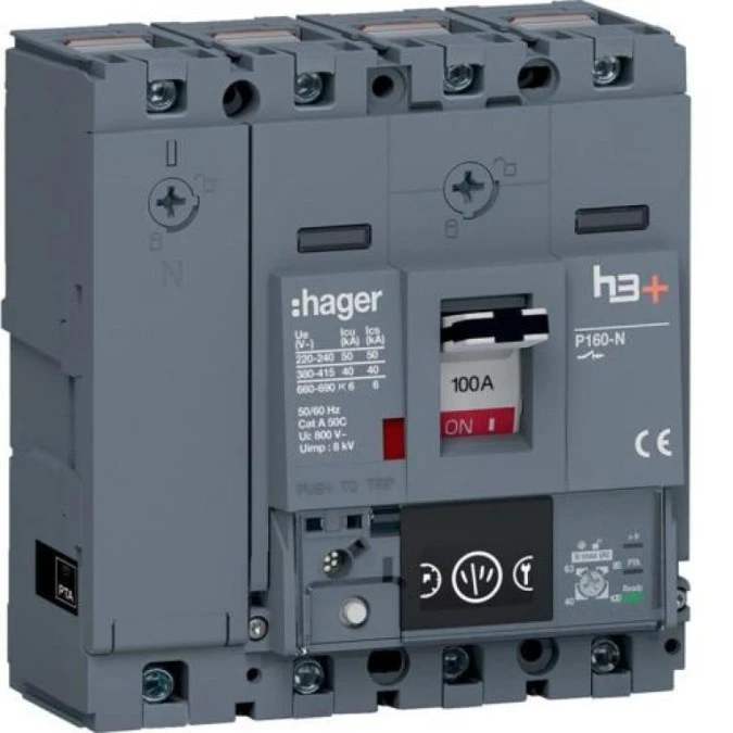 MCCB Wyłącznik mocy h3+ P160 4P 100A 40kA LSnI HNS101GC
