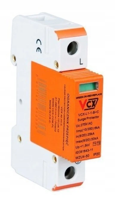 Ochronnik przepięć ogranicznik modułowy Typ T1+T2 8kA 1P 1-F VCX Professional