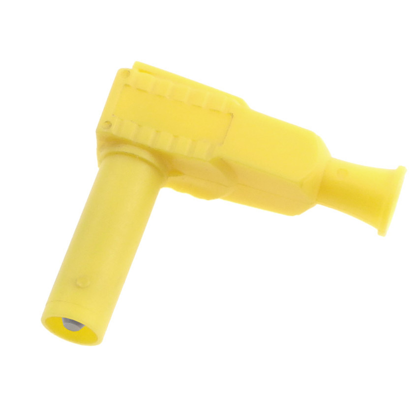 Wtyk bezpieczny 4mm z tuleją stałą kątowy 20A 1000V CAT III, żółty