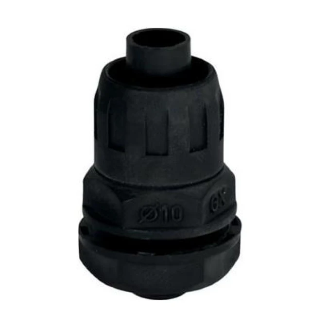 5. Dławik Dławnica do rur karbowanych giętkich GUS fi: 10mm PG9 IP65 czarna 7.06