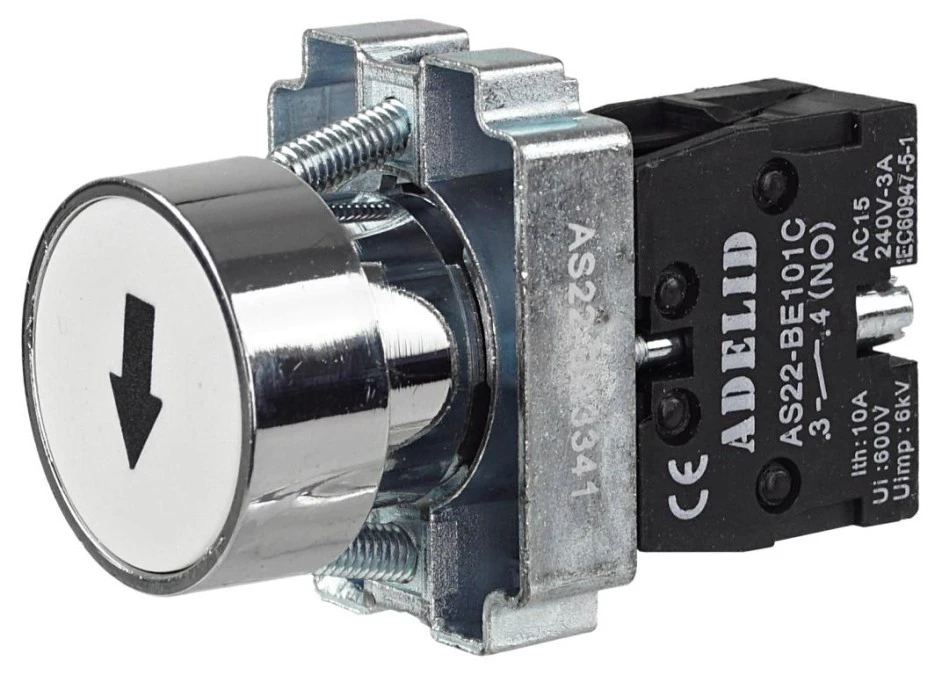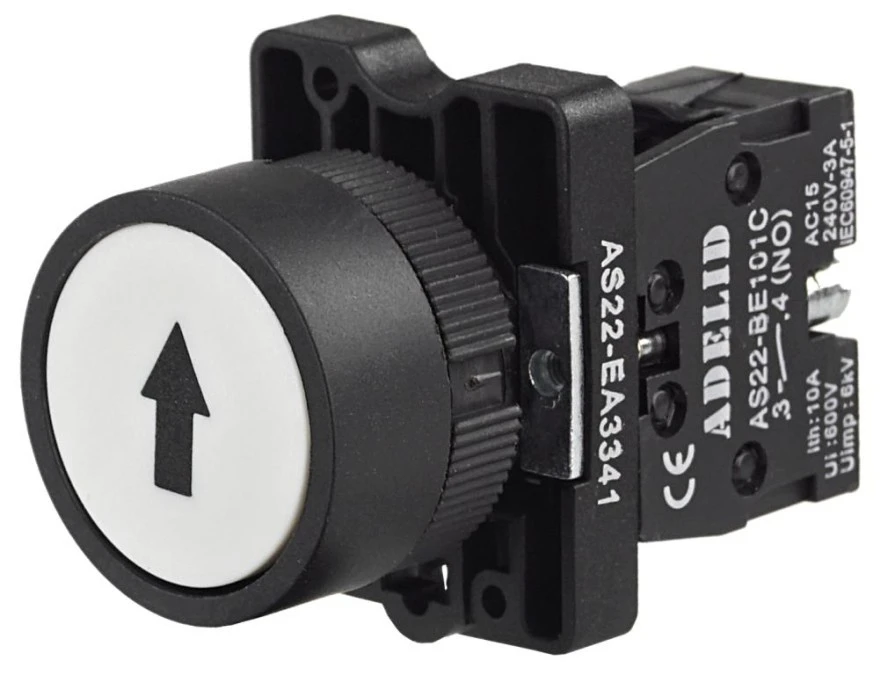 14. Przycisk sterowniczy biały +strzałka 1xNO 10A IP54 metal AS22-BA3341 10.18