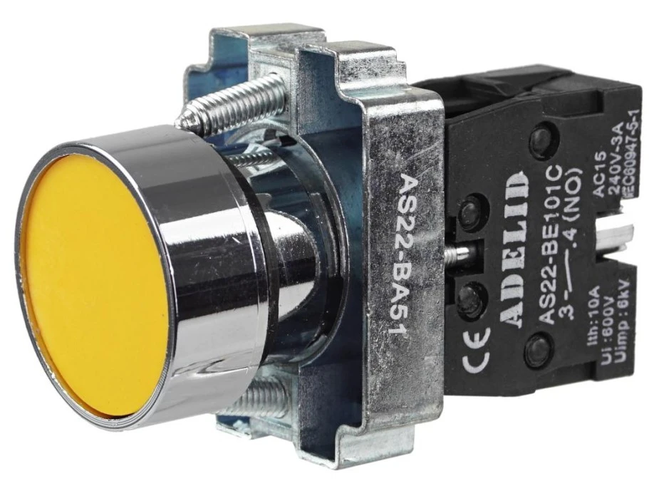 13. Przycisk sterowniczy żółty 1xNO 10A IP54 metal AS22-BA51 10.18