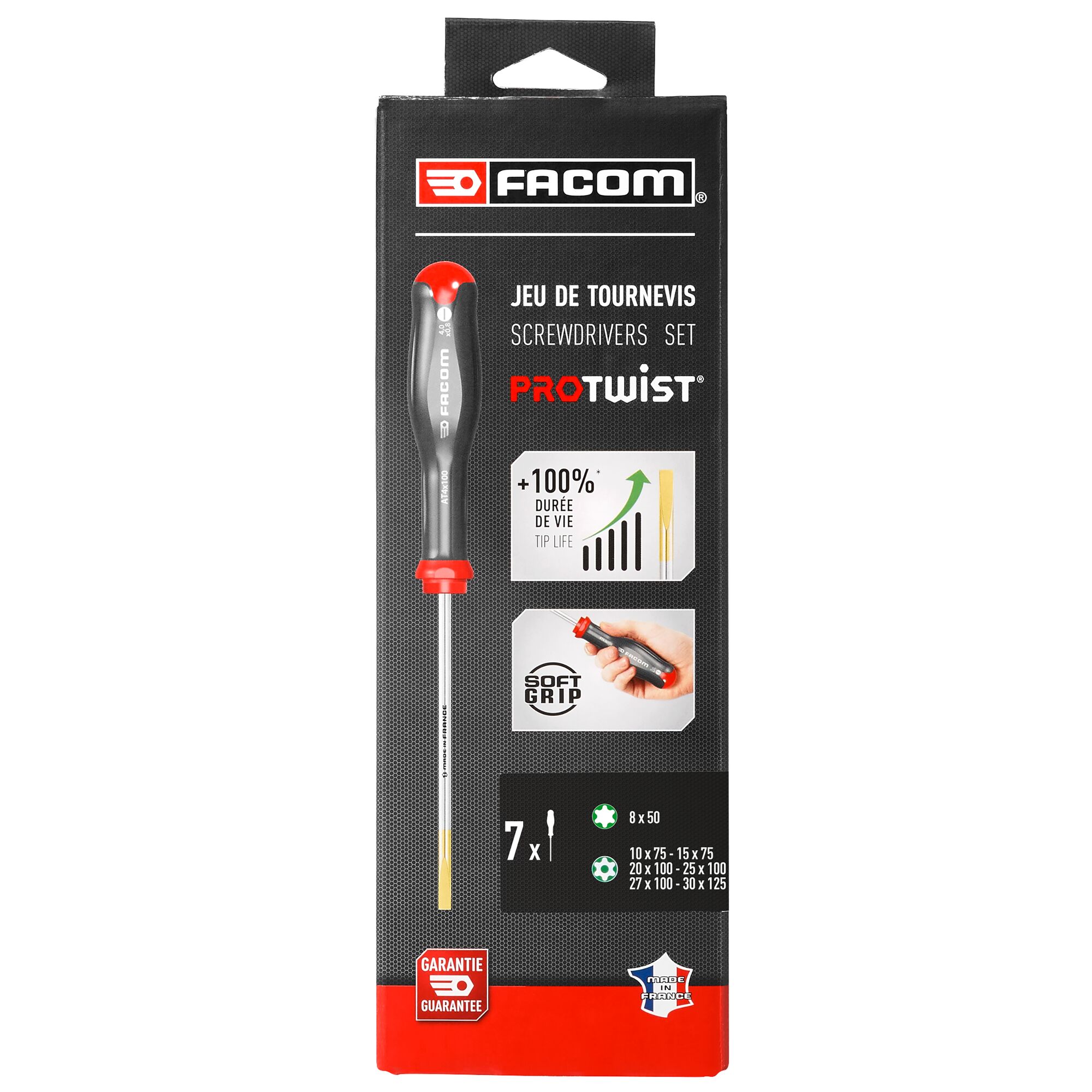 Zestaw wkrętaków Facom Torx zabezpieczony przed manipulacjami; Torx 7 szt. długość całkowita 30 mm, 50 mm, 75 mm, 100
