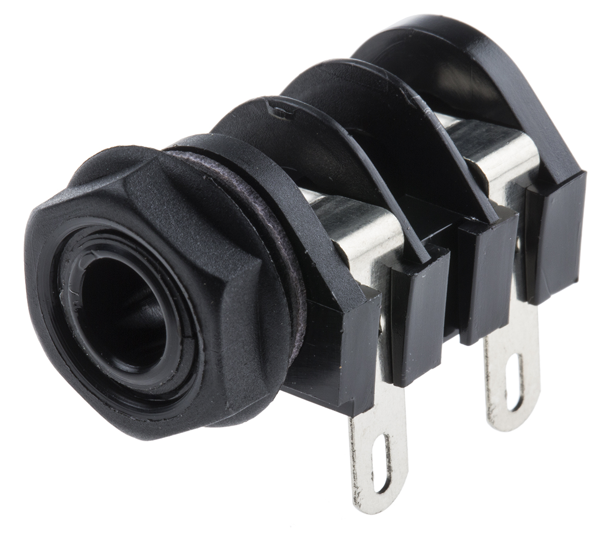 10. Złącze Jack 6,35 mm Żeński Mono Montaż na płytce drukowanej Czarny 2 kV DC 5A 10.75 x5