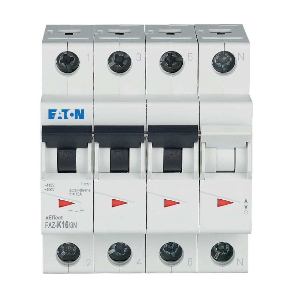 Wyłącznik nadprądowy MCB, Typ K, 3+N, 16A, 400V, Eaton, FAZ