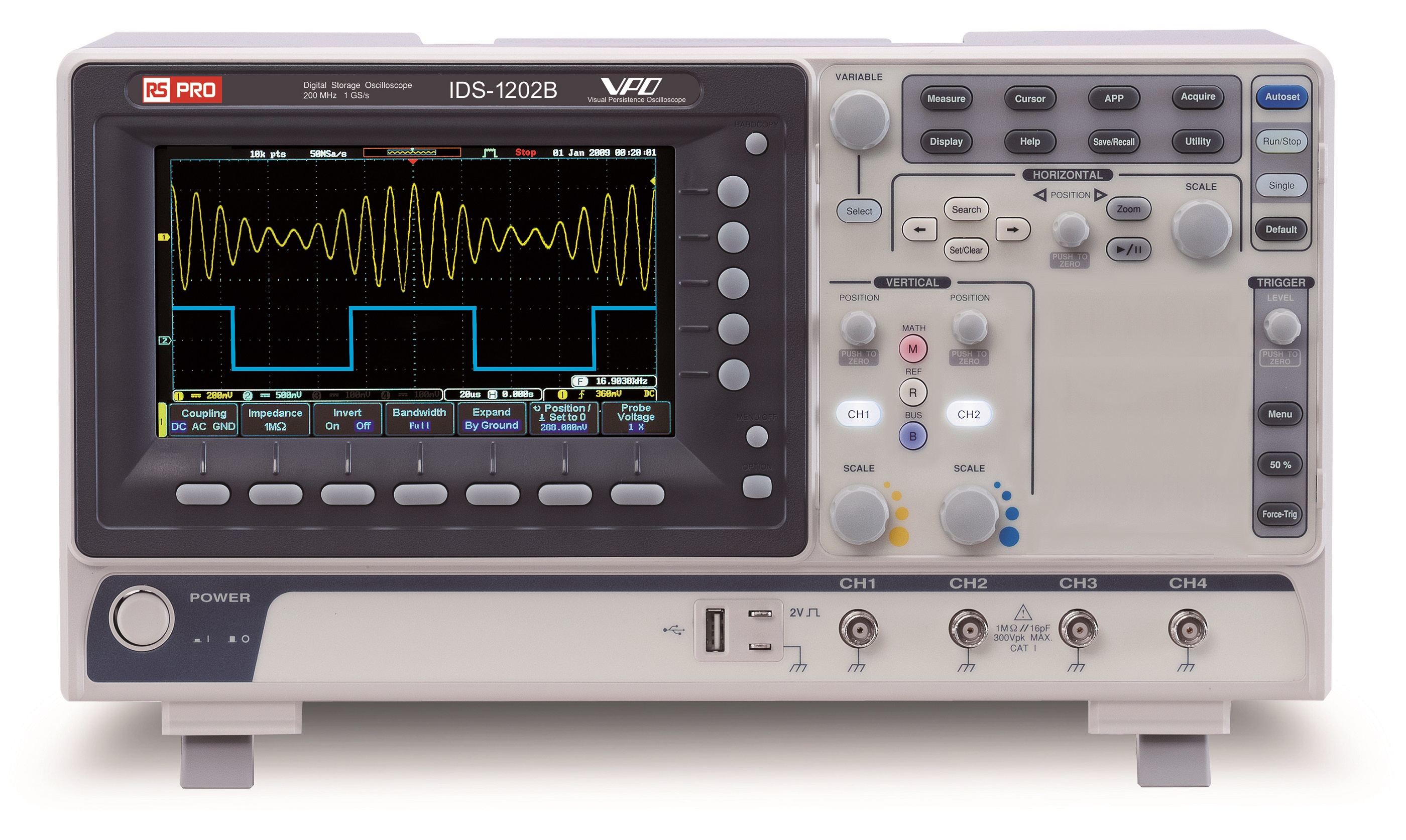 Oscyloskop cyfrowy 200MHz RS PRO Stacjonarny Cyfrowy CAT I, CAT II
