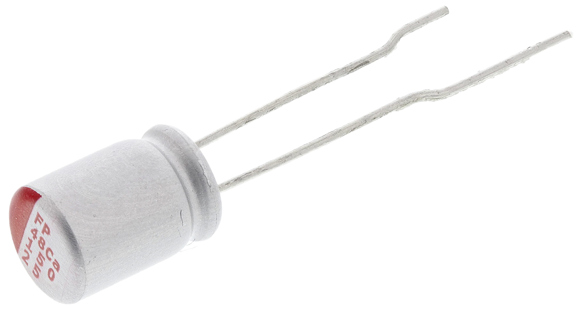 Kondensator aluminiowy z elektrolitem stałym 47μF 6.3V dc Radialny, Otwór przelotowy Nichicon roztaw: 2.5mm 6.3 (Dia.)