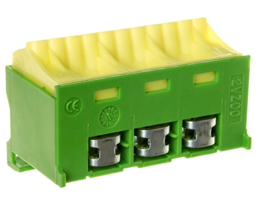 3. Blok samozacisków 1-biegunowy 63A QC 14 przyłączy 33x60x34mm TH35 żółto-zielony KN14E HAGER 49.72