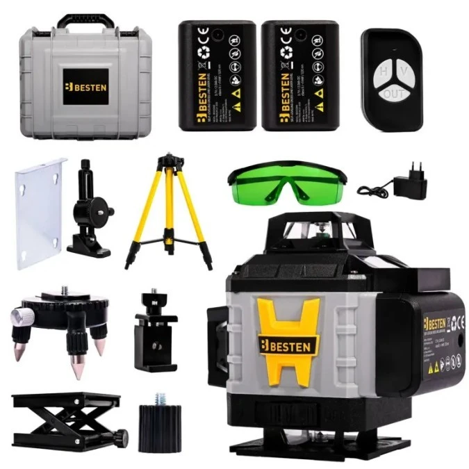 Poziomica laserowa BESTEN BE0002848 4D 16 linii zielony laser 532 nm statyw 118 cm zestaw PRO 1 szt.
