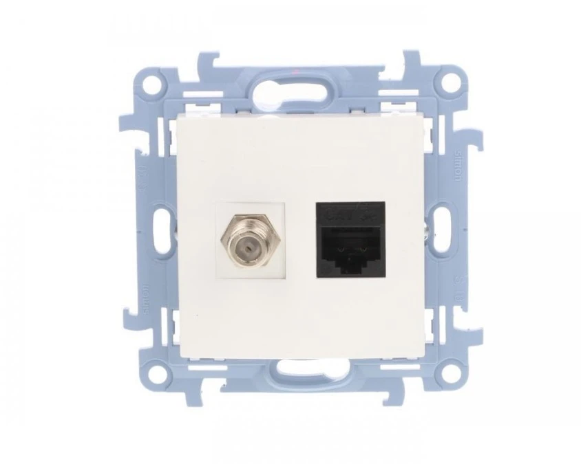 Simon 10 Gniazdo antenowe + komputerow typu F + RJ45 kat.5e białe CASFRJ455.01/11