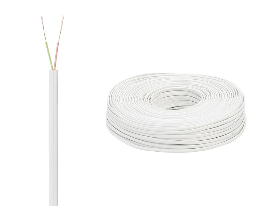 Przewód; telefoniczny; KP-2; 2x0,12mm2; linka; CCA; biały; PVC; płaski; 60V; rolka/100m