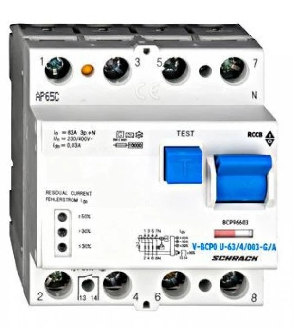 5. Wyłącznik różnicowoprądowy 63A/3+n/100mA krótk.G,typ AC,10kA Seria BC 634.84