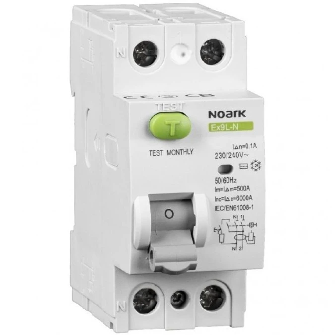 9. Wyłącznik różnicowoprądowy RCD 1-fazowy 40A 300mA typ A 2-biegunowy 2P (230V AC) 2-modułowy NOARK 116.00