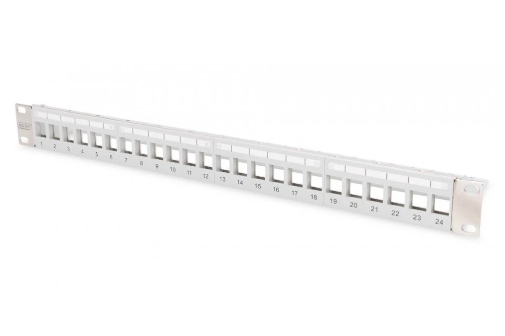 Panel krosowy modularny 19 24x keystone, ekranowany,1U,szary,prowadnica kabli,wymienne pola opisowe DN-91410-LF