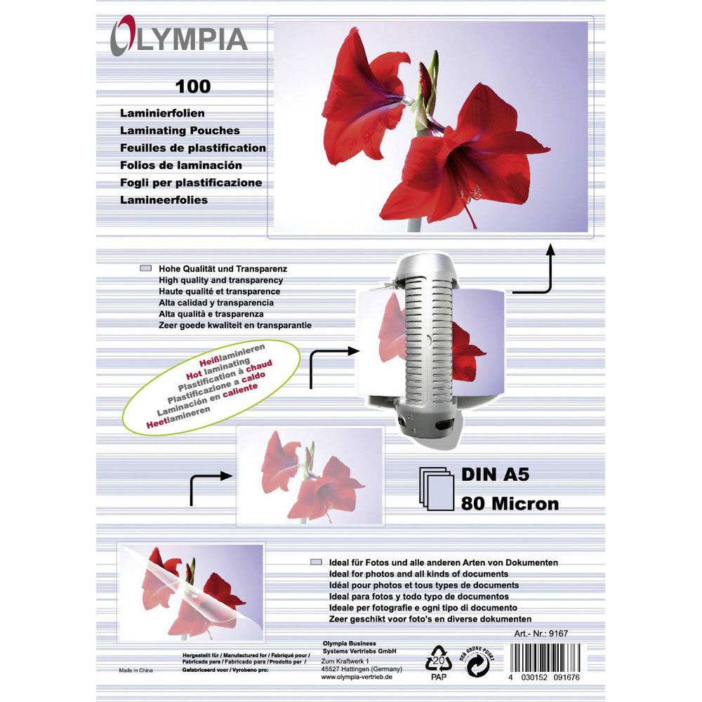 12. Olympia 9167 Laminate Sheet A5 Glossy 100 pcs 41.01