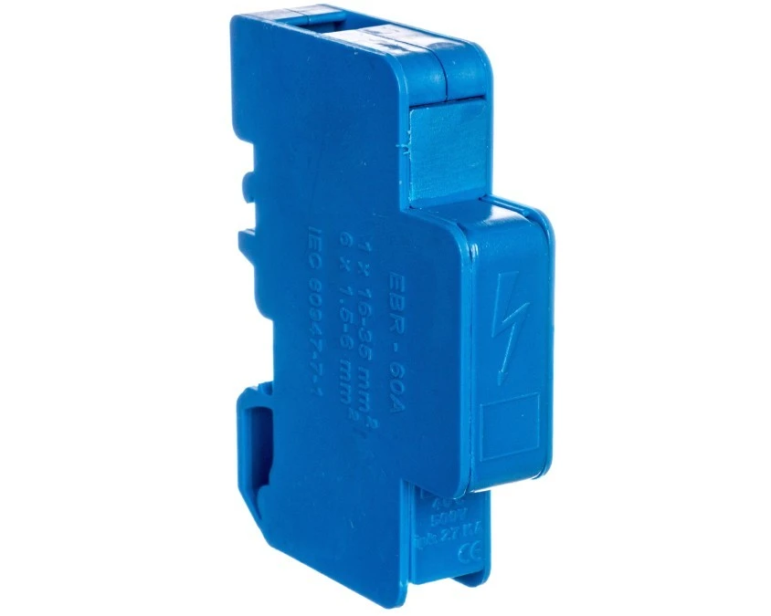 Blok rozdzielczy modułowy 1-biegunowy 60A we: 1x6-35mm2 wy: 6x2,5-6mm2 niebieski LBR60A 84326003