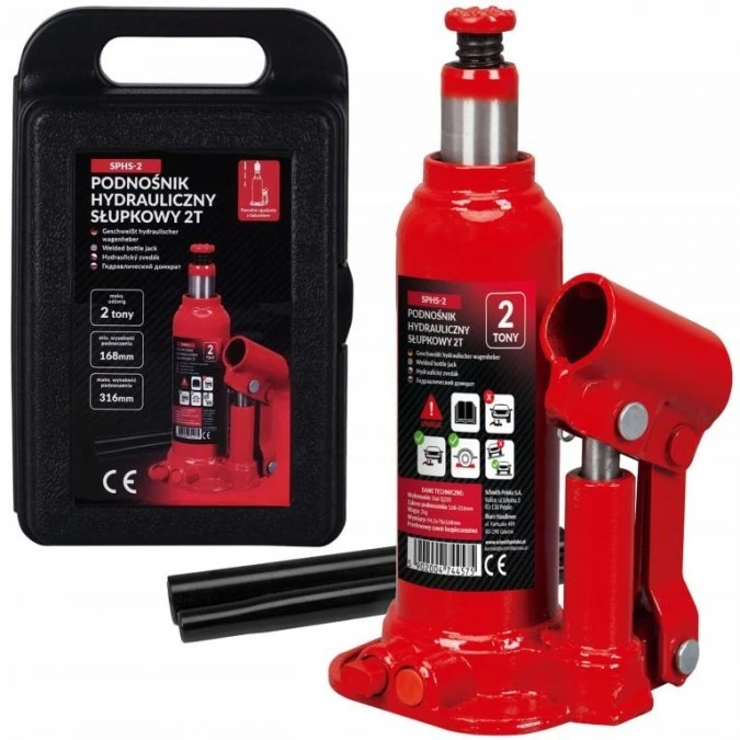 Podnośnik samochodowy hydrauliczny butelkowy słupkowy lewarek do 2 ton Schmith