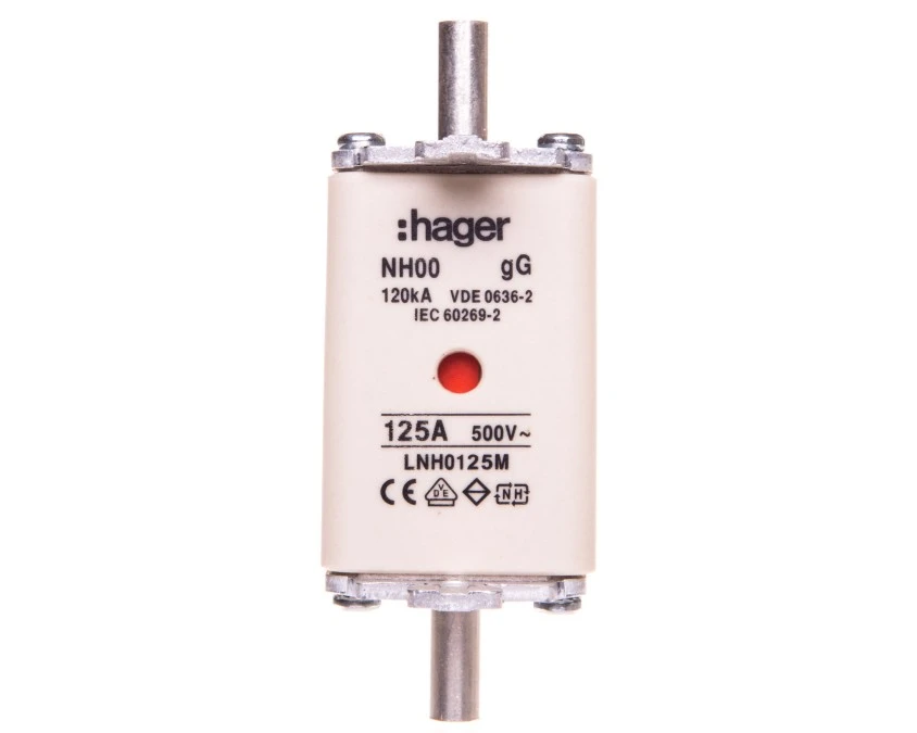 Wkładka bezpiecznikowa nożowa NH00 wskaźnik podwójny uchwyt nieizolowany gG 125A 500VAC LNH0125M HAGER