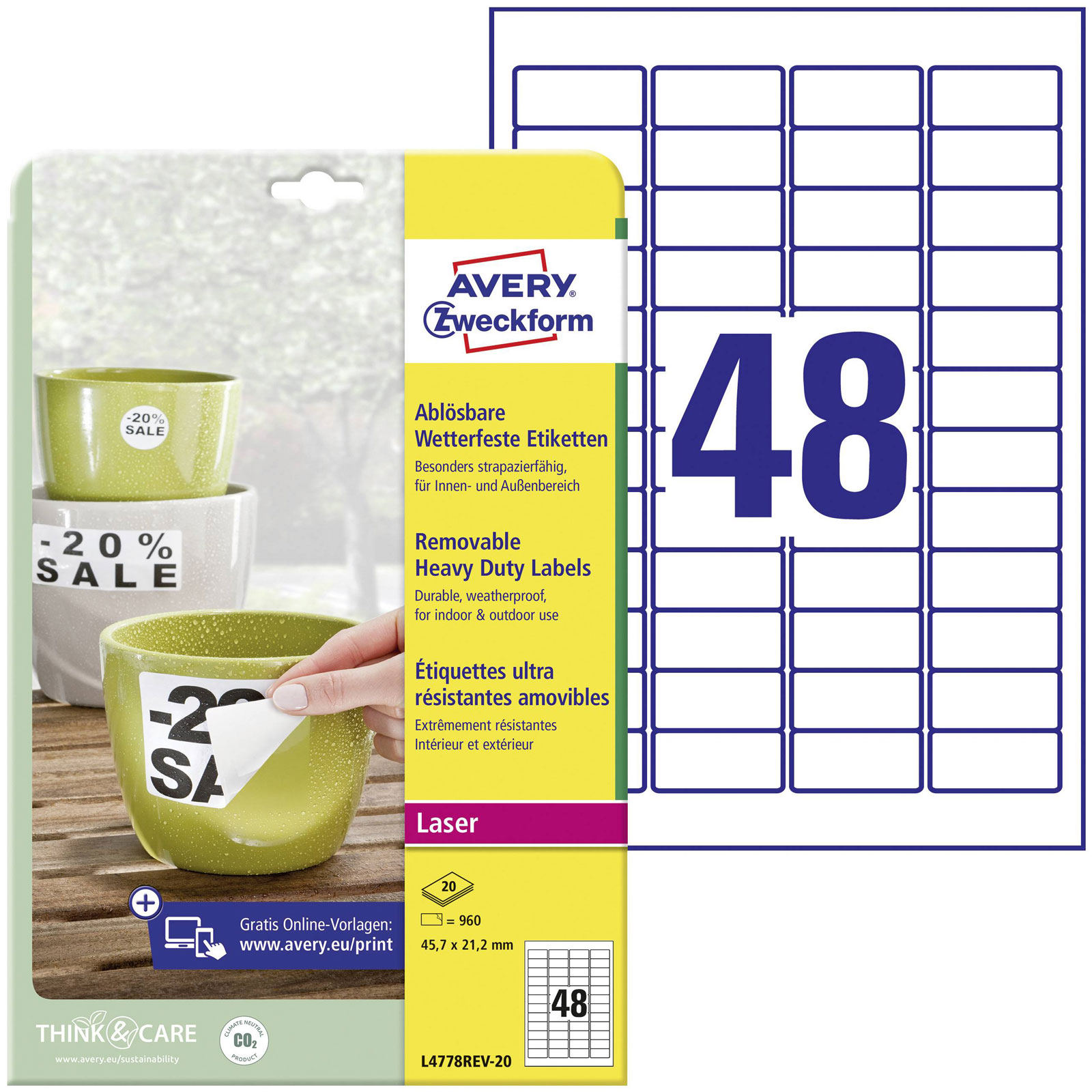 10. Avery-Zweckform L4778REV-20 Label film White Polyester 45.7x21.2mm Removable 191.78