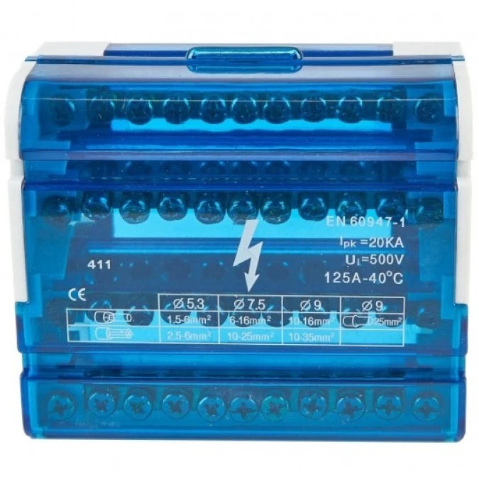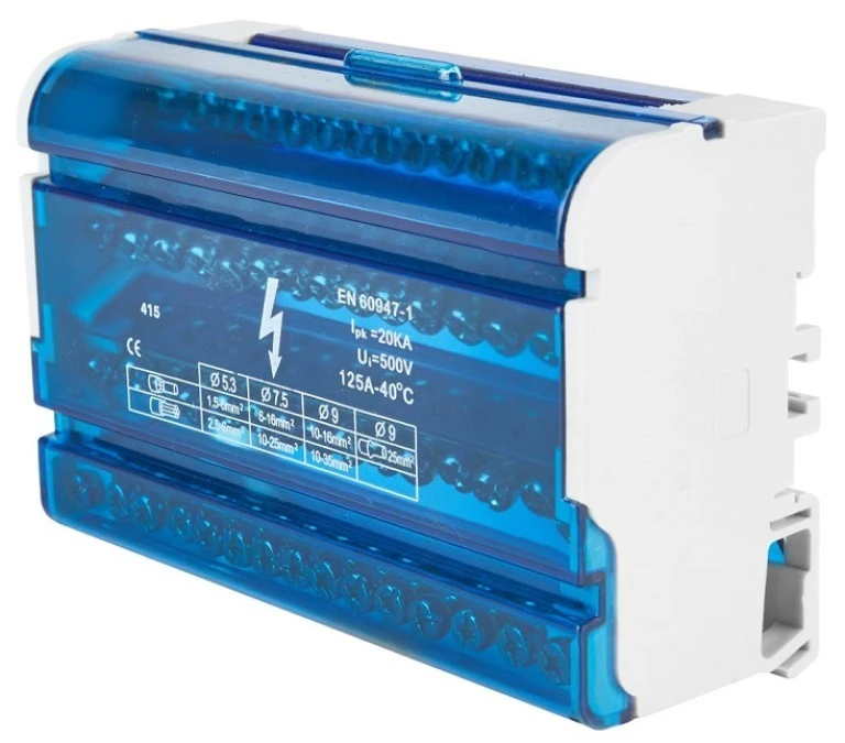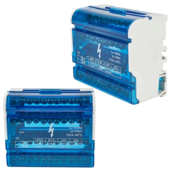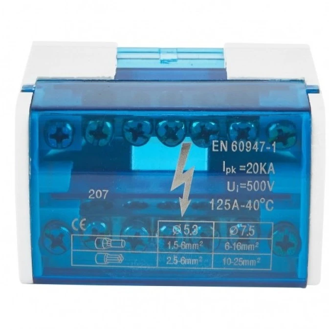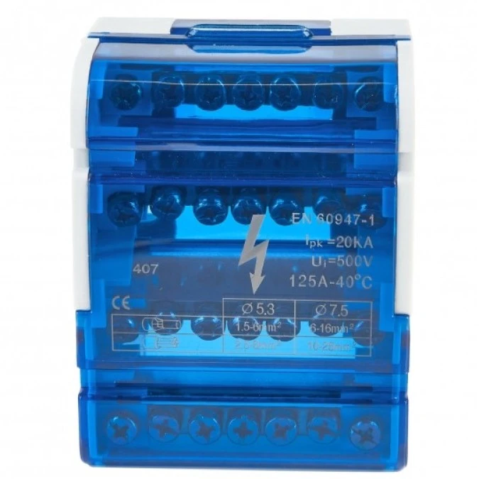 Modułowy Blok Rozdzielczy Mostek Szyna 125A 500V 7 Otworów