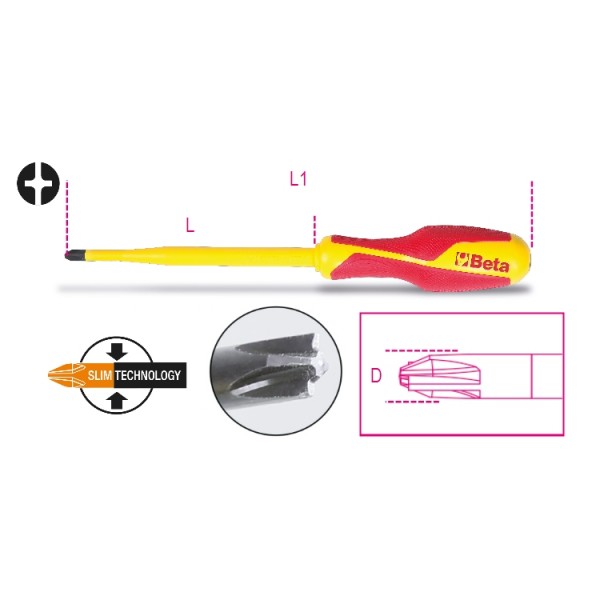 Wkrętak izolowany rozmiar końcówki: PH1+LPP BETA Wkrętak izolowany