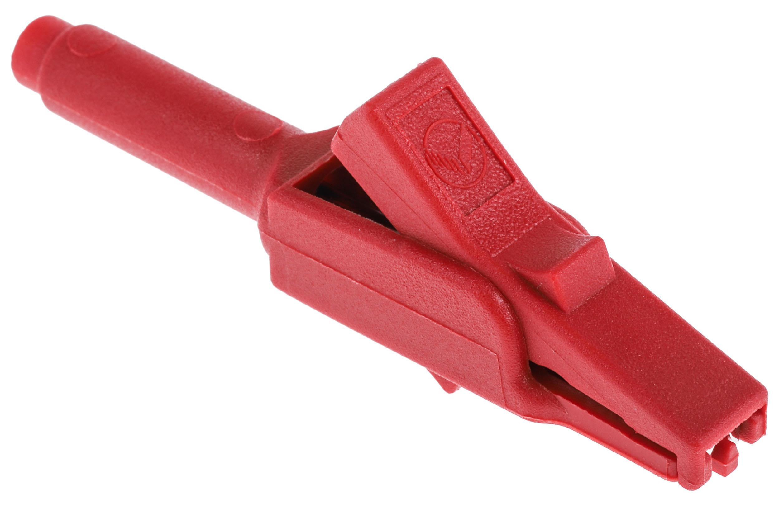 16. Zacisk krokodylkowy 15A izolowany 6mm Czerwony Hirschmann Test & Measurement 19.09 x500