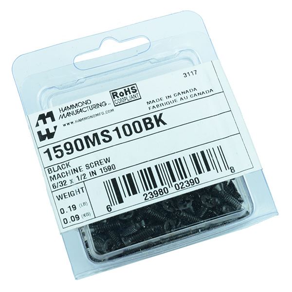 12. 1590 Series Hammond Black Replacement Screws 100pk 1590MS100BK 405.28