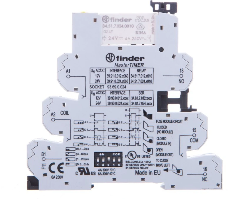 16. Przekaźnikowy moduł sprzęgający 6,2mm MasterTIMER wielofunkcyjny (AI DI GI SW BE,CE,DE,EE) 1P 6A 24VAC/DC 39.81.0.024.0060 174.82