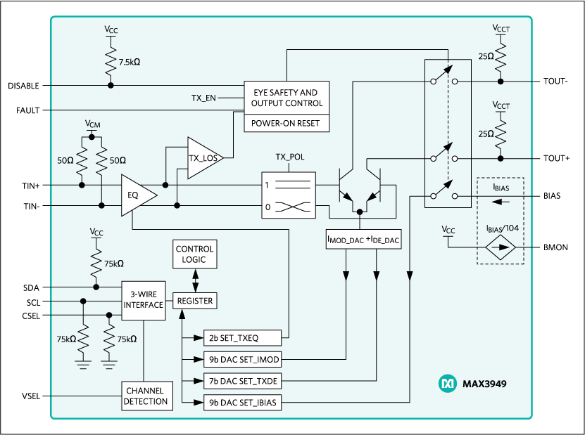 11.3Gbps, Low-Power, AC-Coupled Laser Driver