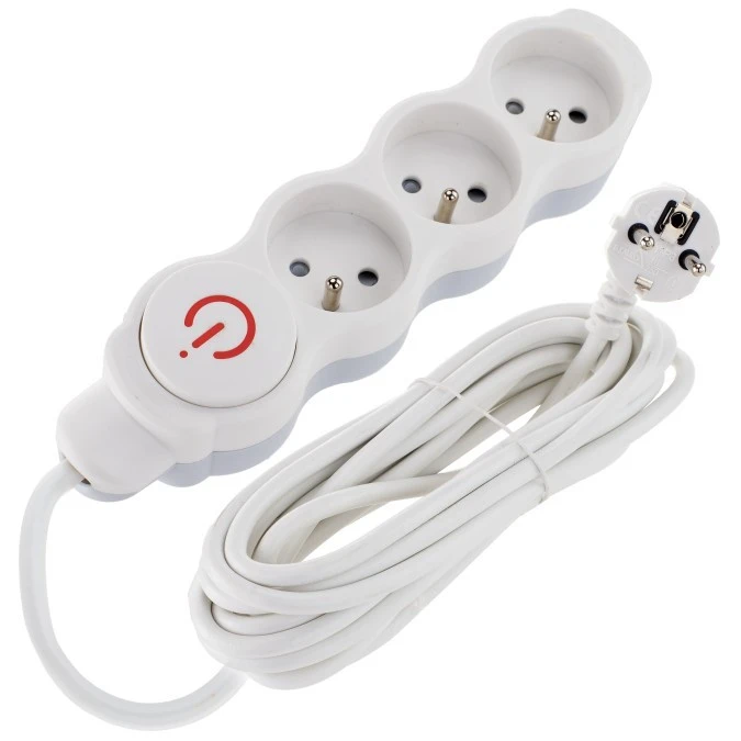 7. Przedłużacz elektryczny Listwa zasilająca na 3 gniazda [2P+Z] z wyłącznikiem biało-szara 1,5m BEMKO 24.44
