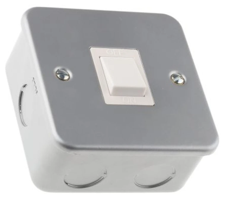 19. Włącznik światła, 10A, 250V, 1-przyciskowy, 1-biegunowy, IP2X Metalclad, MK Electric 417.66