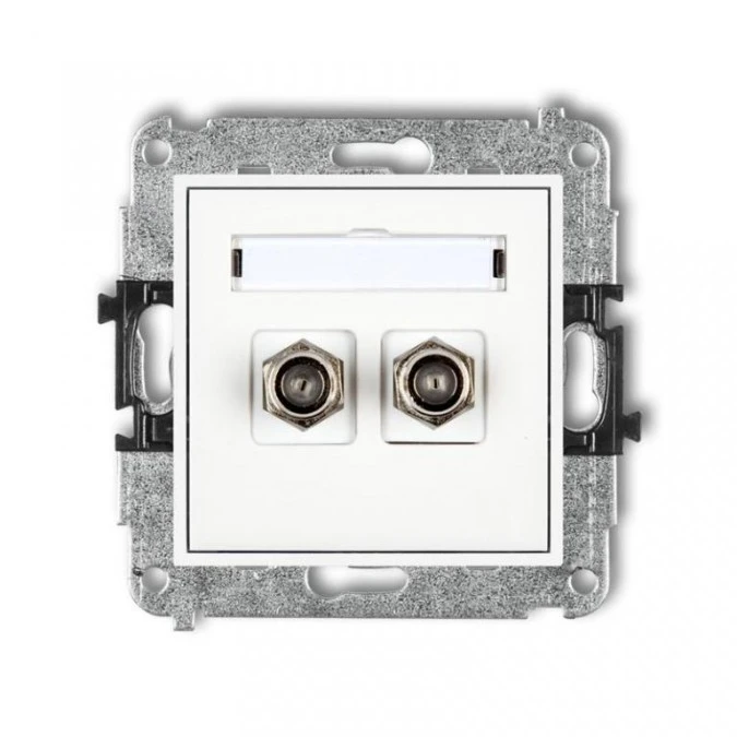 MINI Gniazdo antenowe podwójne typu "F" (SAT) niklowany biały MGF-2 KARLIK