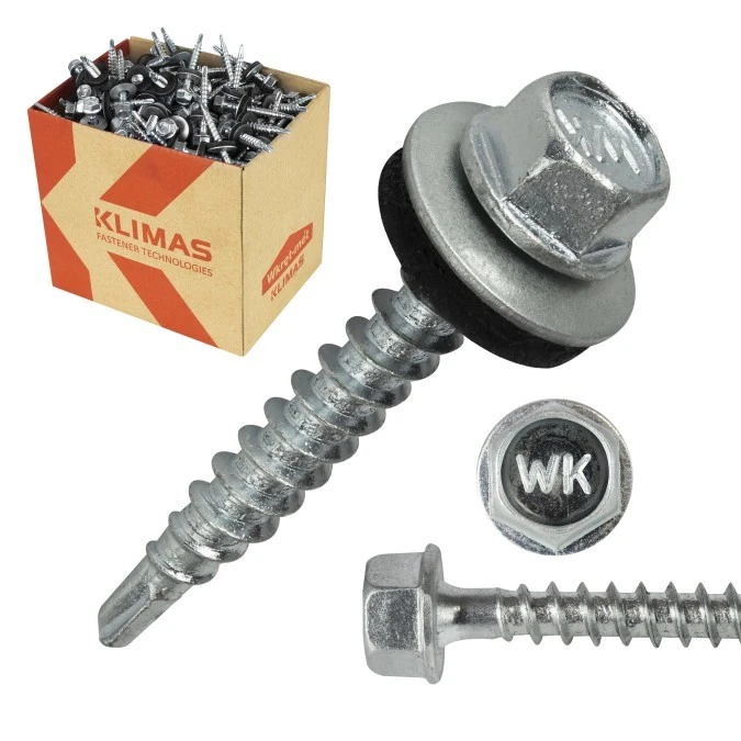 14. Wkręty farmerskie samowiercące 4,8x35 mm do blachy i drewna z podkładką EPDM srebrne KLIMAS 250szt 39.14