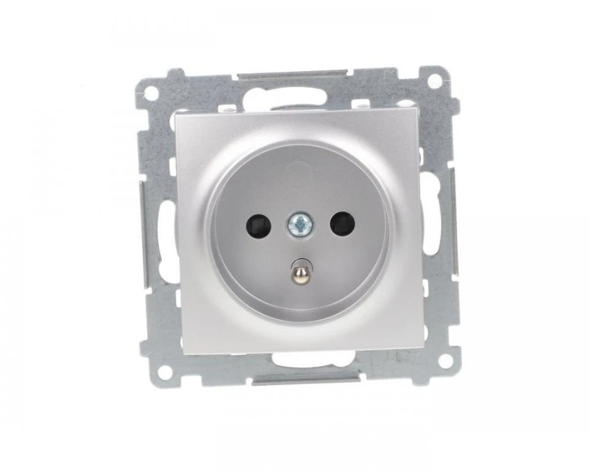 8. Simon 54 Gniazdo pojedyncze z/u 16A IP20 z przesłoną torów, szybkozłącza, srebrny mat DGZ1CZ.01/43 30.18