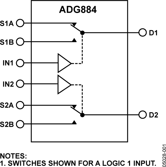 1. 0.28 Ω CMOS 1.65 V to 3.6 V Single SPST Switches in SC70 Open for a Logic 1 Input Sample