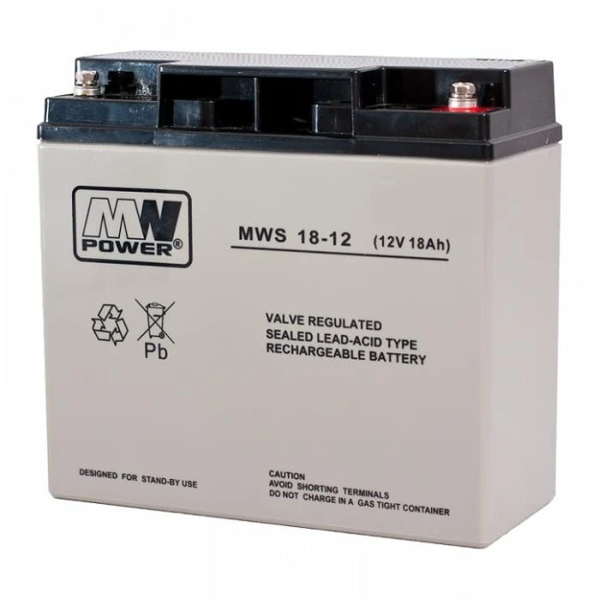 1. Akumulator; kwasowy bezobsługowy AGM; MWS 18-12; 12V; 18Ah; 181x77x167mm; śruba M5; MW POWER; 5,25kg; 3÷5 lat 112.67