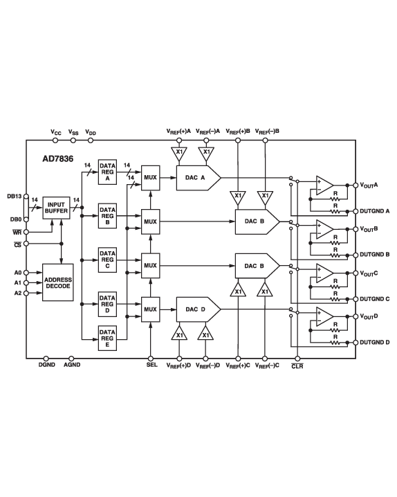 Quad 14-Bit CMOS DAC on One Monolithic Chip